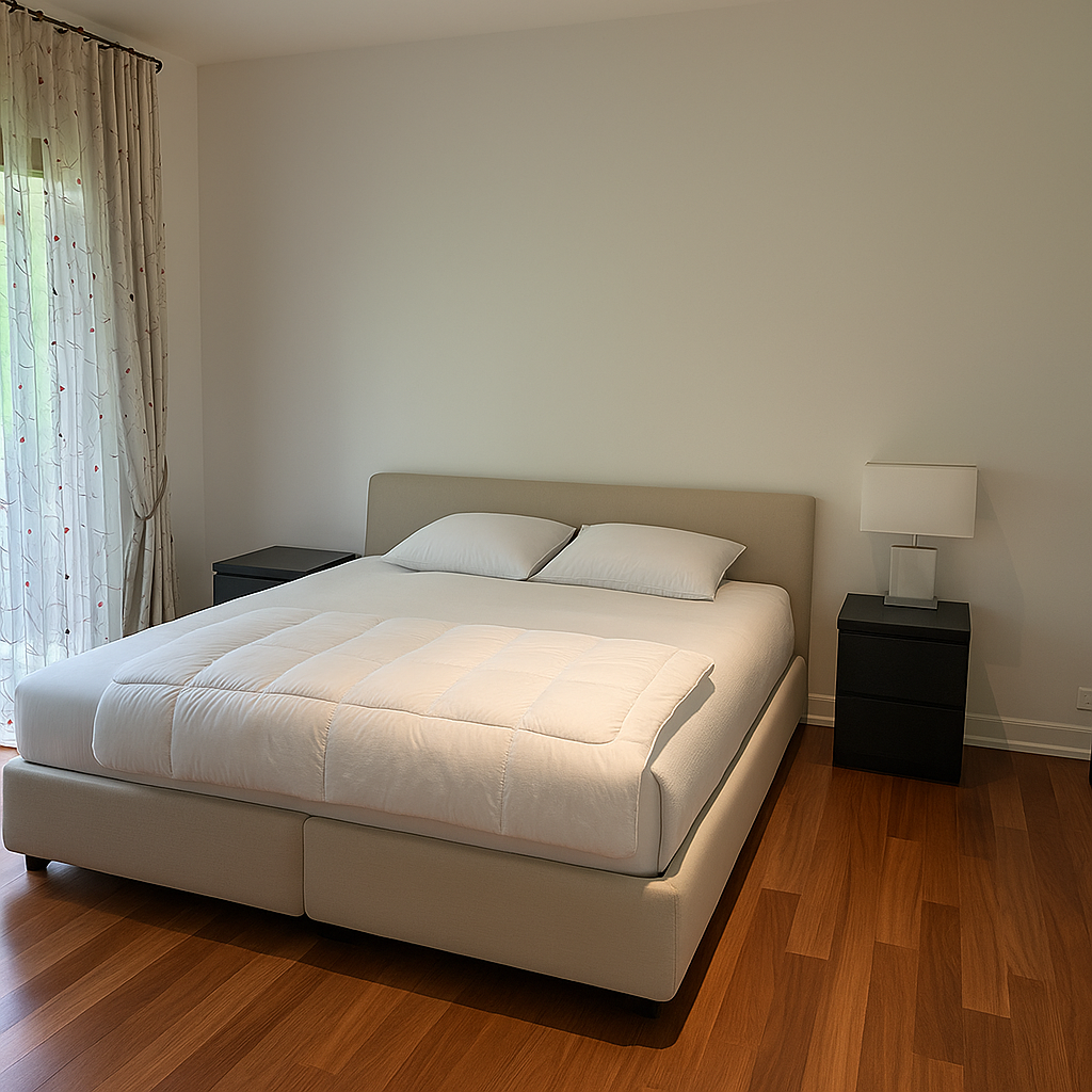 With a total surface of 170 sqm, the property features four well-designed bedrooms, including two master suites with en-suite bathrooms and two additional bedrooms with a shared bathroom—perfect for larger families or guests.