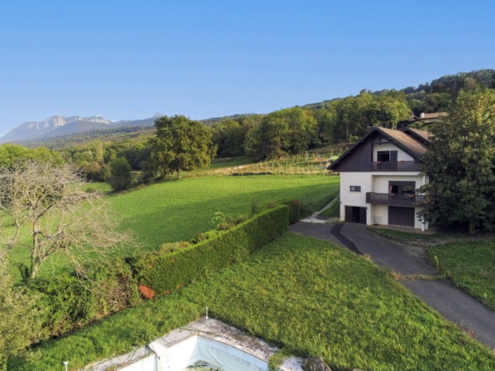 Set on a vast 7,146 m² plot, the property includes two independent houses with panoramic views of Lake Geneva, greenery, and the surrounding mountains.